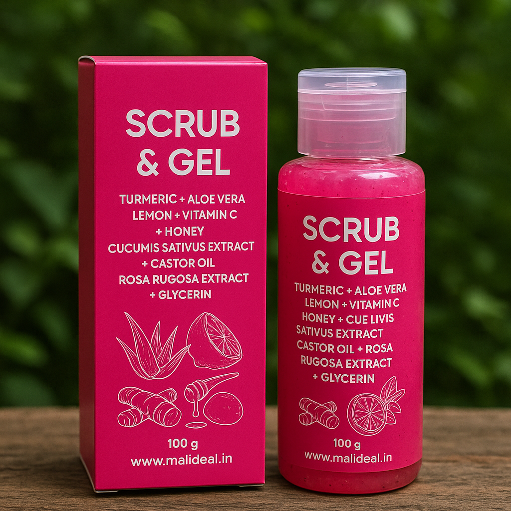 Turmeric & Lemon, Aloe Vera Scrub Gel 100g Moisturizing Care, Skin Brightening, Travel-Friendly Size